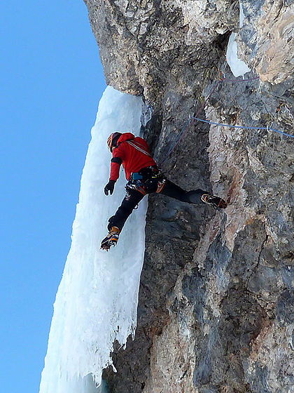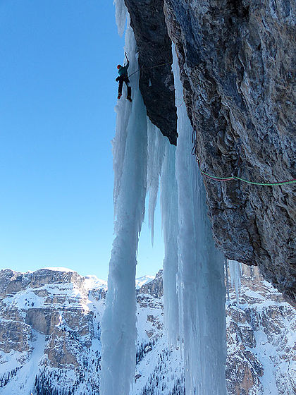 - Corvara (icefall called Schwert des Damokles, WI5, 180m)